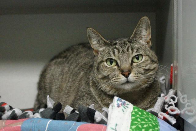 Charlotte is a very sweet, 3 year old, female black and brown tabby kitty. She is a little shy at first, but warms up quickly to new friends. She loves catnip and cuddling with people. If you are looking for someone to take a nap on your lap while you read a book, then Charlotte might just be your new best friend!