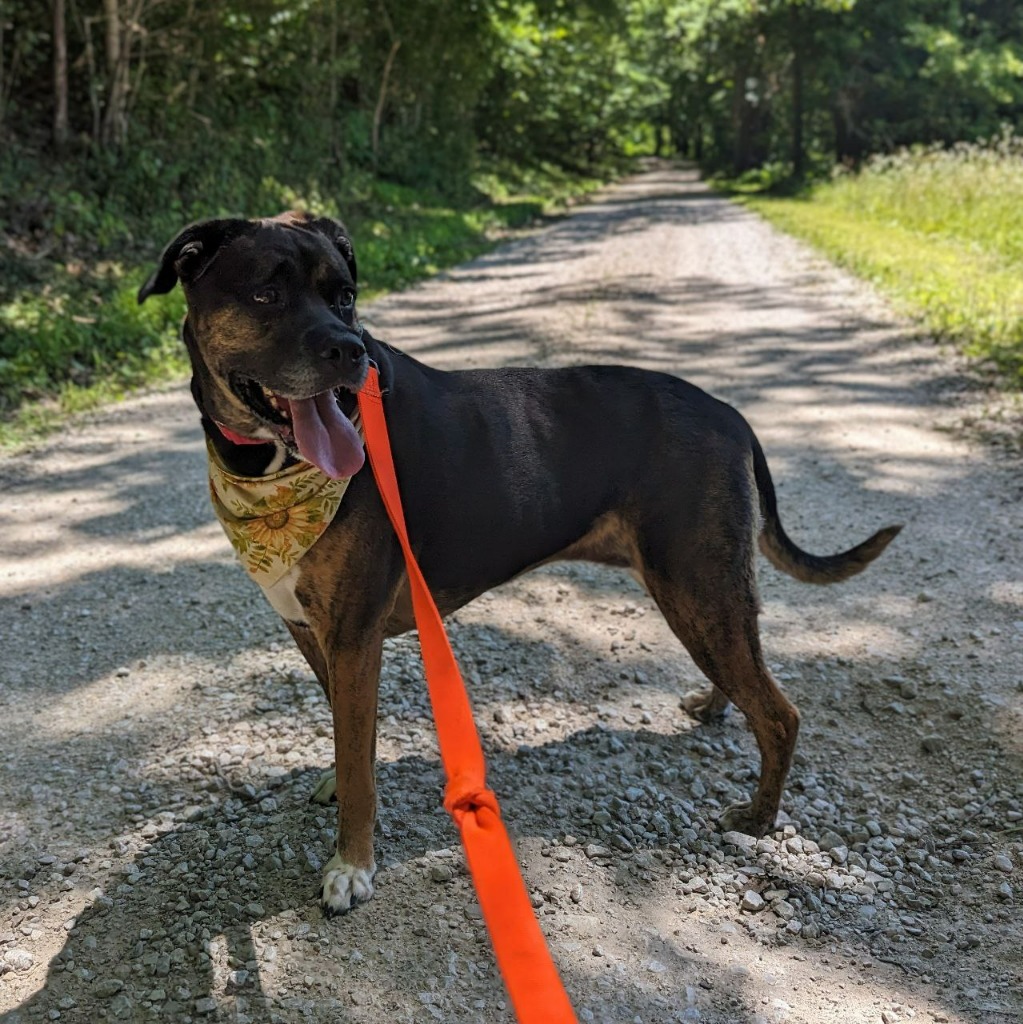 Stella is a sweet and gentle gal who wants to do all the right things. She is housetrained, knows basic commands, gives amazing hugs and kisses, and is an actual joy to be around. Stella will need work on leash training (she likes to yell hello at everyone along the way) and has been responding well to treats over barking.