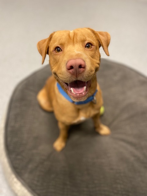 Gus is a pretty cool guy. He came to us as a stray with a fracture to his paw. He's been recovering well and is now looking for a place to call home. Once his paw is totally healed he'll benefit from lots of big walks and playing with his people. He hasn't done well with other dogs here so we think he should be the only dog in his new home. Gus loves toys and helping out with household chores like folding the laundry. He loves to lay on soft blankets and big beds but will use small beds like toys! He is super cuddly and absolutely loves being in your lap. He knows how to sit and go to his bed. We also learned that Gus is afraid of the training clicker, so we just use verbal markers when he does the right thing!