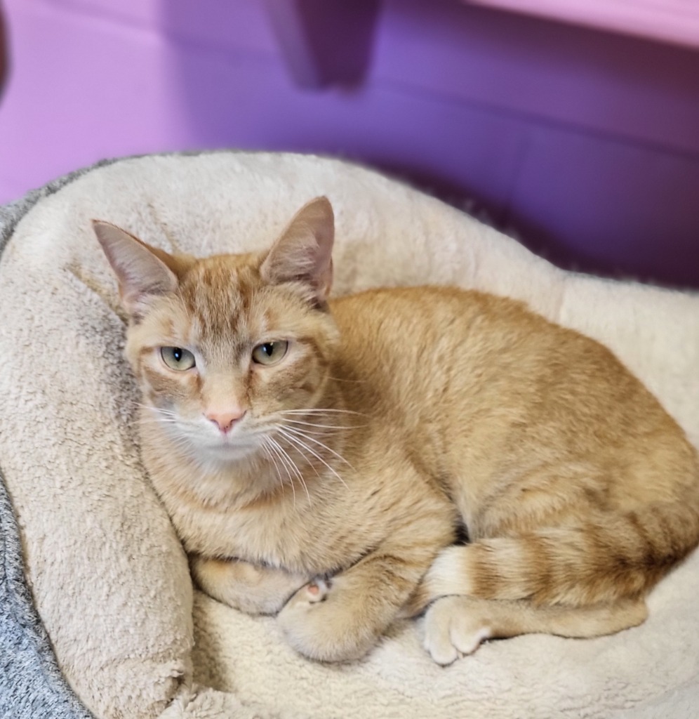 Tippy is the napping king, young and sweet! He can usually be found on one of the beds in his colony snoozing away, even while there is chaos of cats playing around him. He likes a gentle scratch and having plenty of windows to lounge near.