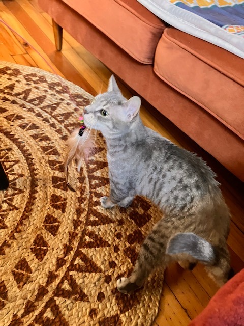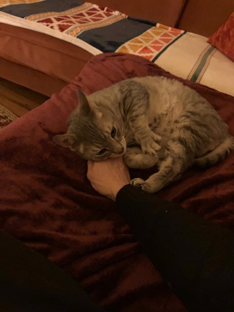 Levon is about 6 years old, and he's come a long way from his tough beginnings. Found living on the streets, Levon was terrified when he first arrived at the shelter, spending over two months curled up in the back of his cage, so scared and hissy. But sometimes, all a little soul needs is a second chance. Since coming into foster care in January, Levon has blossomed into a sweet, playful, and loving companion. He still has so much potential to grow, but already, he is showing his true colors: lively without being destructive, affectionate without being clingy. Every night, Levon quietly tucks himself into his favorite cozy spot and sleeps peacefully until morning. When you greet him to start the day, get ready — his favorite thing in the world is cuddles! He purrs so hard he drools from happiness. Levon loves calm, gentle company. He's looking for a quiet home without young children or other pets, as loud noises and sudden movements still scare him. But if you earn his trust, he’ll choose to be by your side — sitting near you on the couch, lying at your feet while you work, or even joining you for a yoga session (yes, he’s an aspiring yogi and absolutely loves the mat!). While he isn’t a lap cat yet, you can see he's getting closer every day. He’s also very clean, eats well (both wet and dry food), and can’t resist a little treat — shaking a treat bag is a great way to call him when needed! He understands "no" and is respectful of the home. Levon may not have had the easiest start, but he is making up for lost time with every little step forward. In the right home — quiet, safe, and full of love — Levon will be the most loyal, joyful companion you could ever wish for. Ready to welcome this special boy into your heart and home? *In a Foster Home-- Call (812) 349-3492 for Questions*