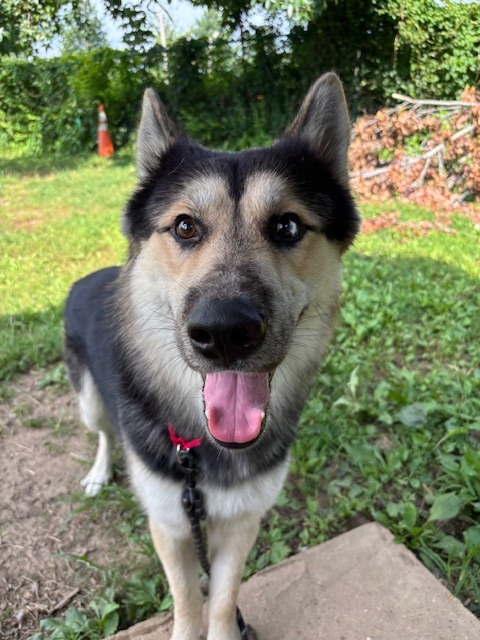 Ragnar is a happy, wiggly young guy who loves human affection. If he could make friends with everyone on the planet, he probably would! This sweet, energetic GSD/husky mix will make a great family pup, and is housetrained, good with kids, and good with cats.