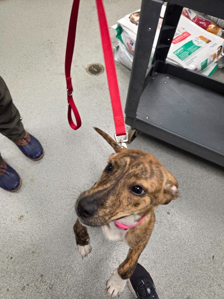Hi, I'm Cookie Monster! Just like my namesake, I love sweet treats and am soooo food motivated! My human friends at the shelter tell me that I'm the wiggliest girl around - I can't help it, I just love new friends so much! I love making doggy friends, too, and would love to become besties with any of your resident pups!