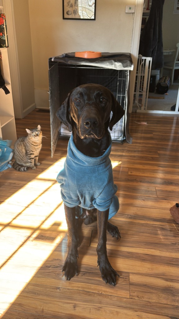 Meet Arlo! Arlo is a truly special guy with a heart as big as his smile. He loves kids, cats, dogs, and honestly, every person he meets. When he first came to us, Arlo was severely underweight and unsure of himself, but with the help of his wonderful foster family, he’s been gaining weight, relaxing, and learning that life can be good. His foster described him as a “velcro dog”. Arlo wants to be right by your side, always. He’s obsessed with peanut butter, adores car rides, and is happiest cuddled up close to his people. Because of all he’s been through, Arlo struggles with separation anxiety. Being left alone is very stressful for him, and he’s still learning that his people will always come back. He’ll need a patient, understanding adopter who can provide gentle structure, time, and continued support to help him feel secure when on his own. A home where someone is around most of the day — or one with another confident dog to keep him company, would be ideal. Arlo has so much love to give, and with the right family who can help him continue to build confidence and trust, he’ll be the most loyal companion you could ask for. If you’re ready to open your heart to a dog who will adore you endlessly and just needs a little extra help learning to feel safe, please contact our Outreach and Behavior Coordinator Emily Herr at [email protected]