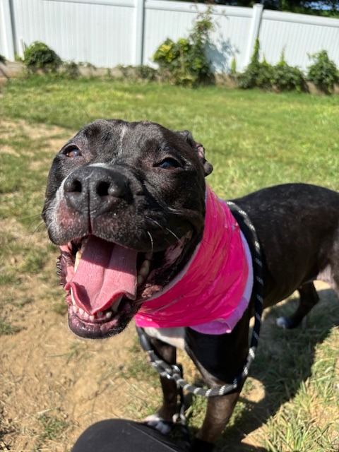 Olympia is a very good gal with the wiggliest of booties. She loves all the people, loves all the toys and loves a good run in the yard. We dare you to not fall in love with her.