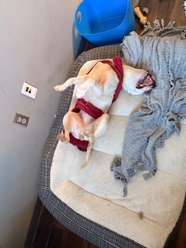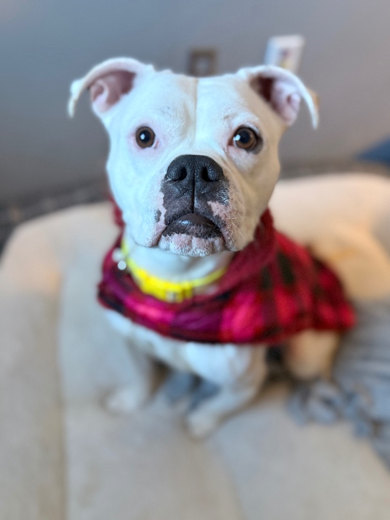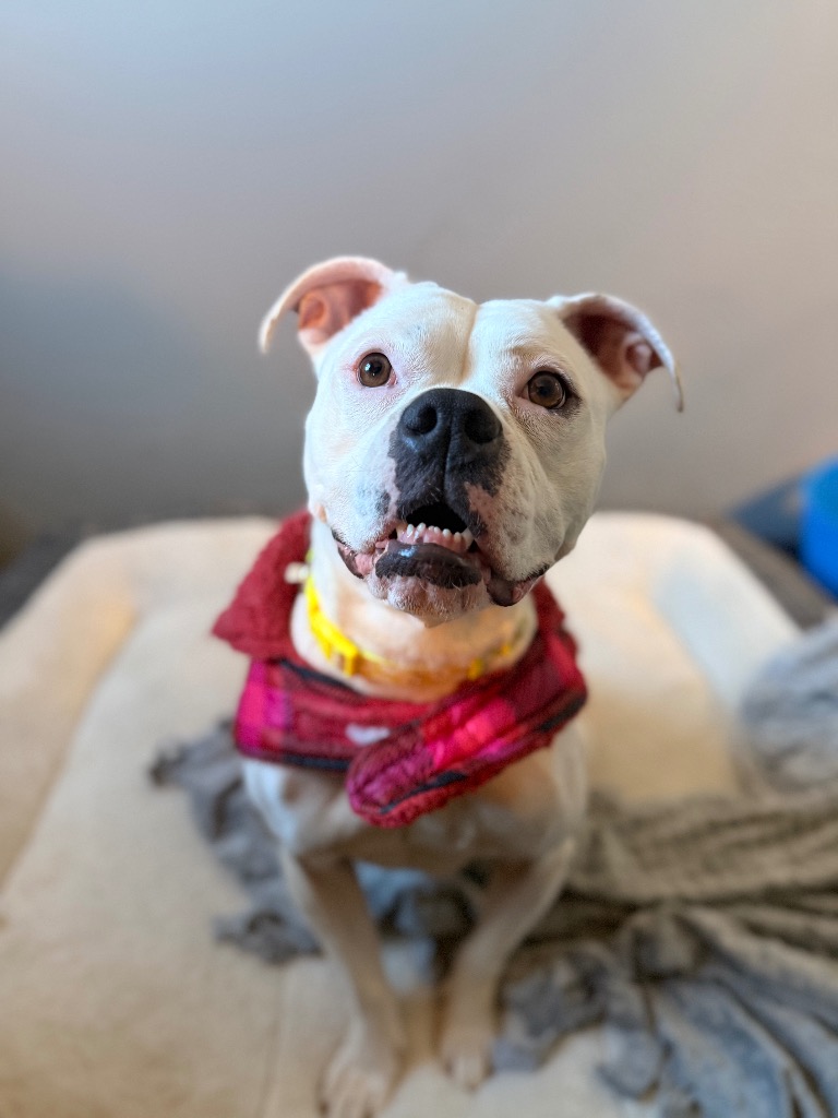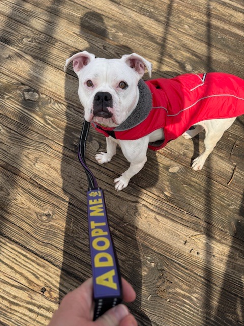 Treats, you say? Where might one find those? Treat is always on the lookout for her namesake; she loves a good snack! She does have a bit of a sensitive tummy, so she actually has her very own bag of treats all to herself here. Treat is a cuddly girl who loves car rides and snuggles with her people. She walks well on a leash and does great in a crate. Treat loves other dogs, but she finds children scary and would prefer a home without them!