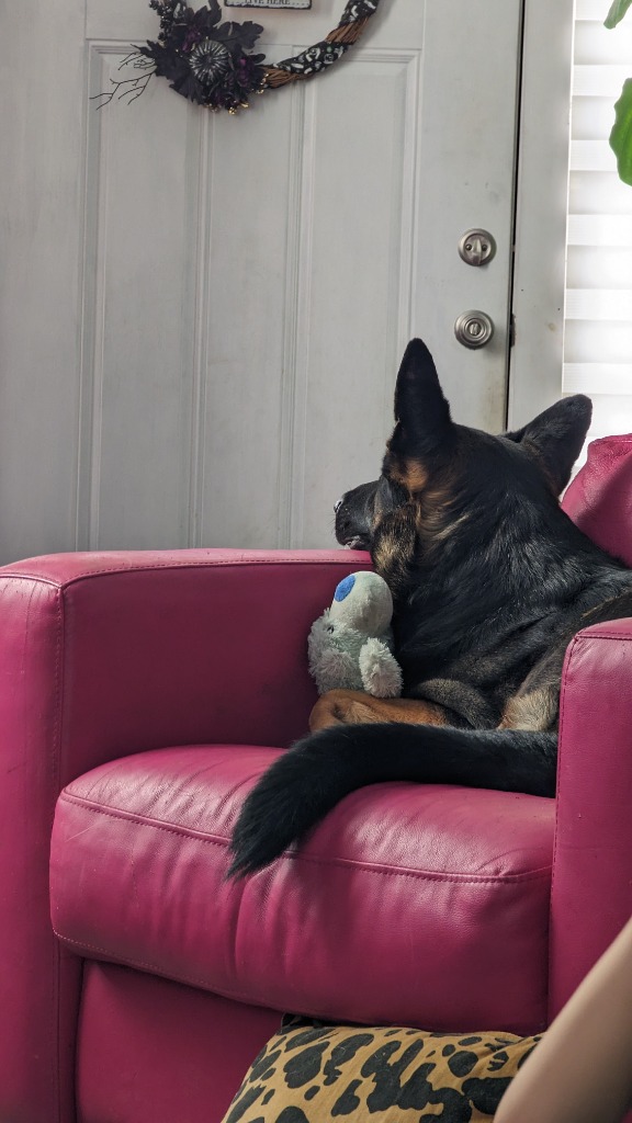 Q is a Courtesy Listing and is not housed at the Animal Shelter. Please note that the City of Bloomington Animal Care & Control accepts no responsibility for this pet. Potential adopters are responsible for communicating directly with the pet's guardian. We’ve had Q since she was four weeks old, and she’s grown up alongside three energetic kids. Until last year, she lived indoors, but a change in our housing situation required her to transition to being an outdoor dog. She’s affectionate, loves belly rubs, and knows basic commands like sit, down, shake, no, and her name. Q has lived peacefully with a cat for about four years, but she does not get along well with other dogs. She’s deeply loyal to her people and tends to get jealous, putting herself between them and other dogs. She has never shown aggression; she simply barks and guards her space. She would thrive in a home with no other dogs or with someone experienced in managing jealous behavior. Due to job changes and another move, we need to find her a stable, loving home where she can get the attention she deserves. If you are interested in Q, please call or text: 812-202-2076. ***Please ignore the Apply to Adopt button for this pet & contact the owner directly***