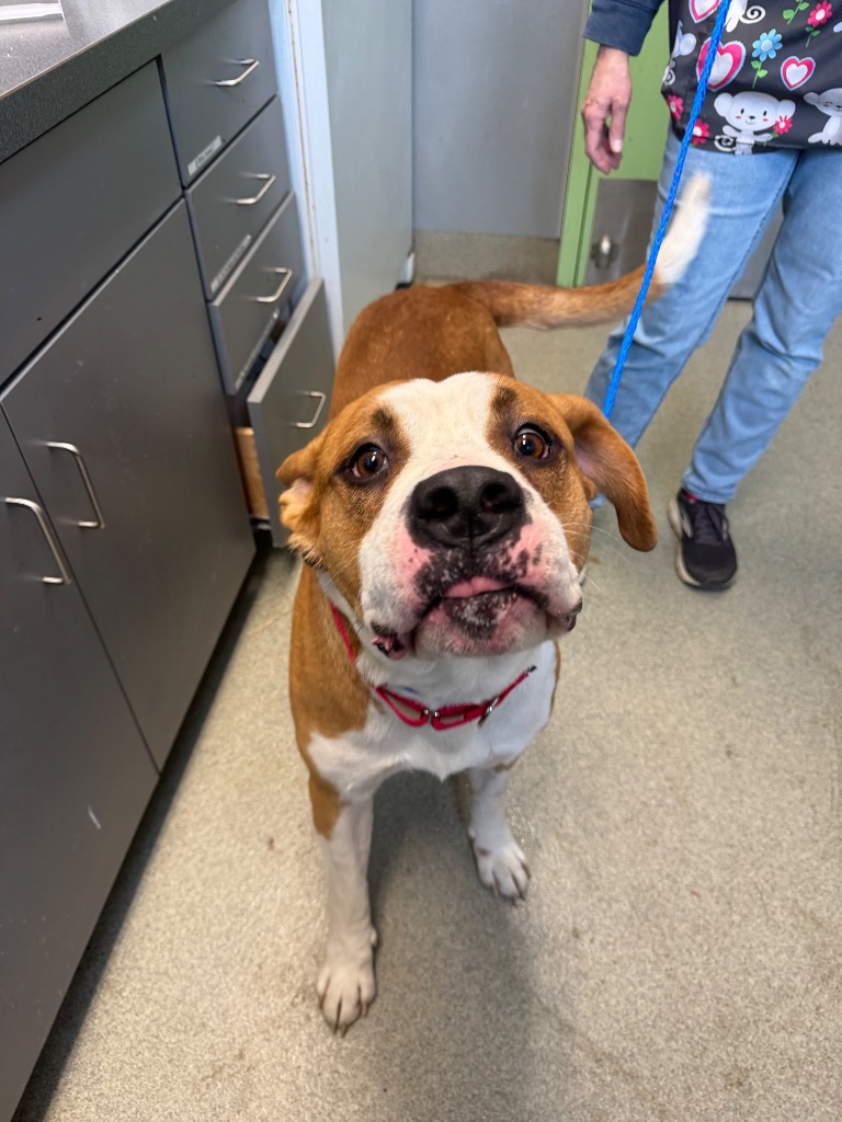 Dudley is a solid dude with a solid heart. He's beefy, friendly, and house-trained. He recently went on an outing where he met lots of people and adored everyone he met, plus gave tons of kisses!
