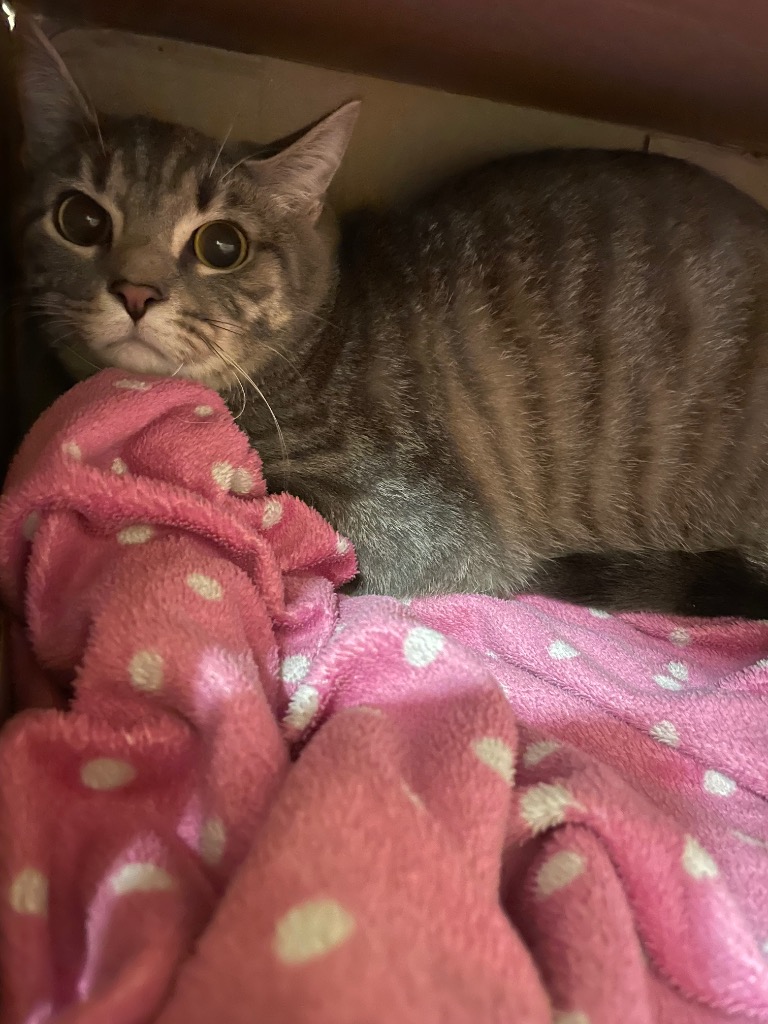 Asher is very inquisitive with such a distinct meow. Active but does love to snuggle.