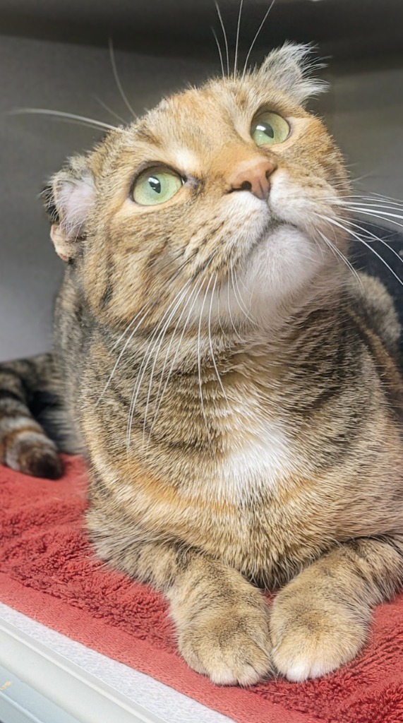 Precious is a foodie who warms up when given all the snacks she deserves. She likes to peer down upon her human subjects from the heights of her kennel, making sure everyone knows she is the queen of the castle.