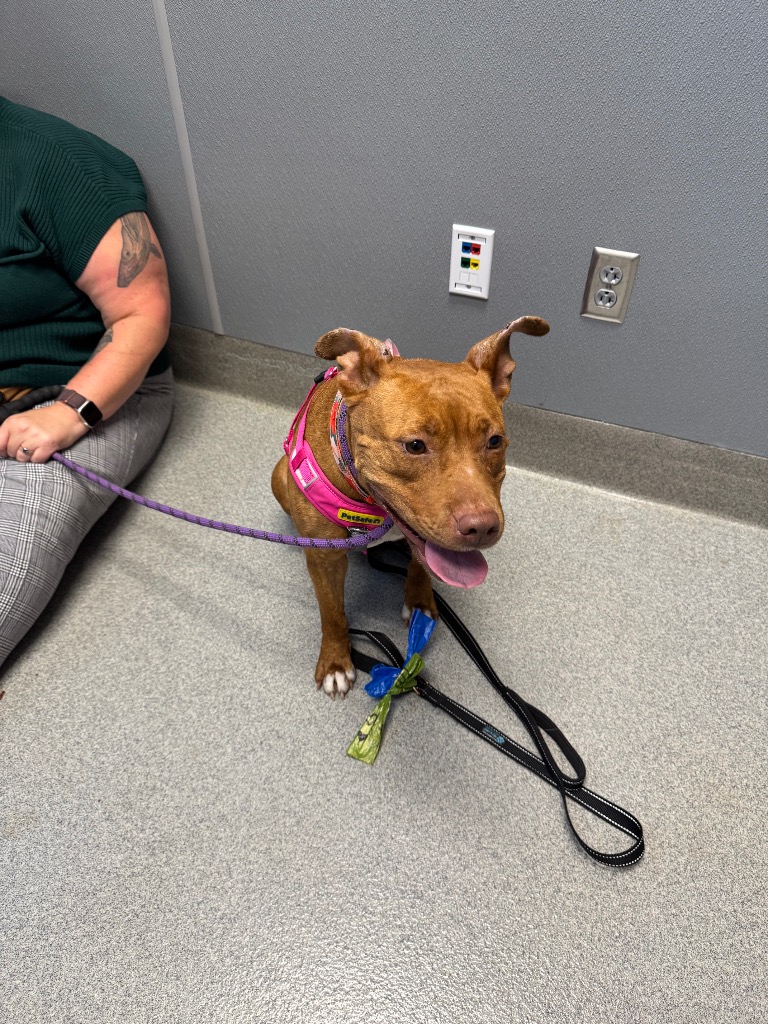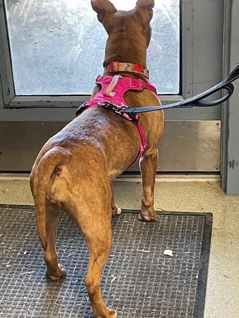 Jolene's foster reports that she is a super affectionate, house trained gal. She likes other dogs and is down to share her toys with them. She thinks motorcycle noises are scary but otherwise loves being walked. Jolene appreciates being introduced to people when they're sitting down so she can get comfortable with them but will warm up nicely given a few minutes. *In a Foster Home-- Call (812) 349-3492 for Questions*