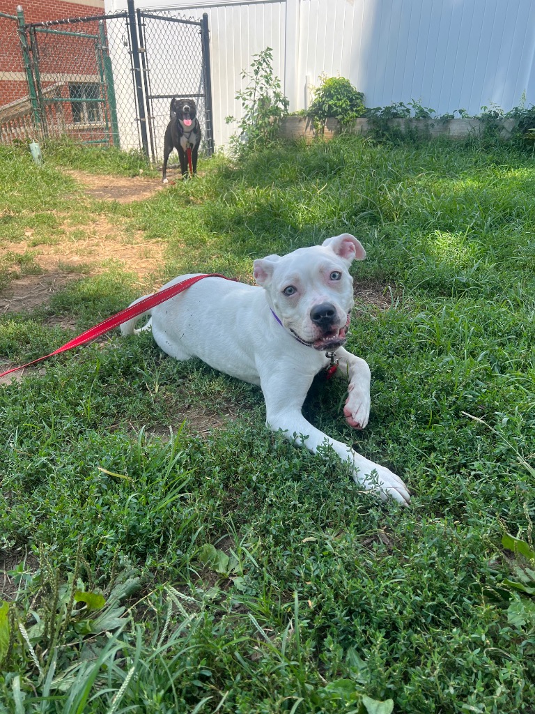 **I am in a foster home!** The only thing Legend loves more than romping around in the yard is people, although sometimes it takes a second. She is full of that super cute puppy energy that makes everyone smile. This sweet goofball loves to run free in the yard or chase after squeaky toys. She does great with other dogs and is showing excellent promise with her housetraining and crate training!