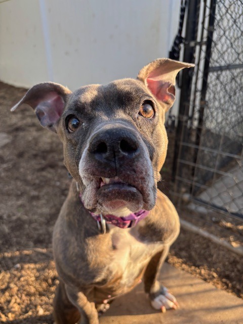Daisy Roberta is a goofy dog who is full of enthusiasm and zest for life! She loves good snacks, good company and often plays like a much younger dog when she's boppin around the yard! She is only about 30 pounds and basks in everyone's astonishment at how adorable she is. Daisy has spent time in a foster home and done well with wearing outfits to combat the cold!