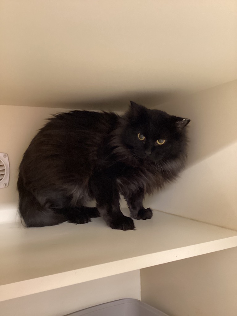 Jasmina is a shy cat who is uncertain around people and prefers her space. She might be well-suited as a working or outdoor cat so she can have the space to acclimate to her area.