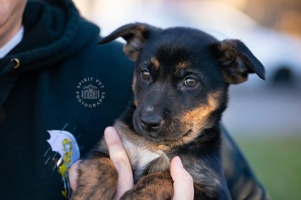 Neptune is very confident and curious and loves exploring. She is working on crate training and is generally doing very well with it! She is also working on positive potty habits/ learning to go outside to potty on a schedule. She has been exposed to multiple adult dogs and dog-savvy cats. She is interested in the cats but is so far pretty respectful of them. She does well with the dogs and is learning to accept their communication when they are done playing or if her puppy teeth hurt. She has been eager to meet both adults and children, but ultimately defers to people she knows best, which is a great quality to have when training. She loves toys and is very food motivated, so she will be a fun one to train! Neptune needs a home with a privacy fence or needs leashed/supervised outside time as she can and does already easily scale chain link fences. *In a Foster Home*